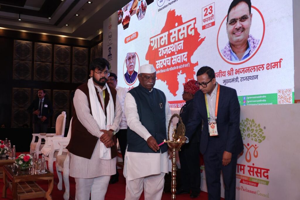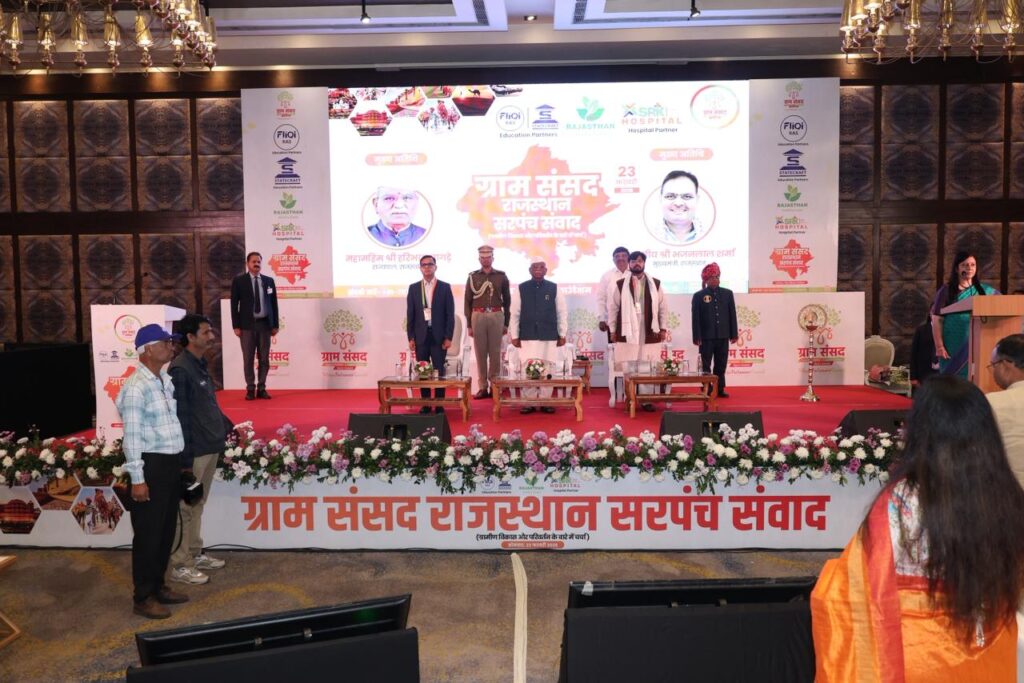 ग्रामीण लोकतंत्र को मजबूत बनाने और गांवों के नेतृत्व को अधिक प्रभावी बनाने के उद्देश्य से रैंडम वेरिएबल फाउंडेशन द्वारा 23 फरवरी को जयपुर स्थित मैरियट होटल में “ग्राम संसद – राजस्थान सरपंच संवाद” कार्यक्रम का आयोजन किया गया। इस विशेष संवाद कार्यक्रम में पंचायत स्तर के जनप्रतिनिधियों, नीति-निर्माताओं, सामाजिक कार्यकर्ताओं और विकास विशेषज्ञों ने भाग लेकर ग्रामीण प्रशासन और देश निर्माण में सरपंचों की भूमिका पर व्यापक चर्चा की।